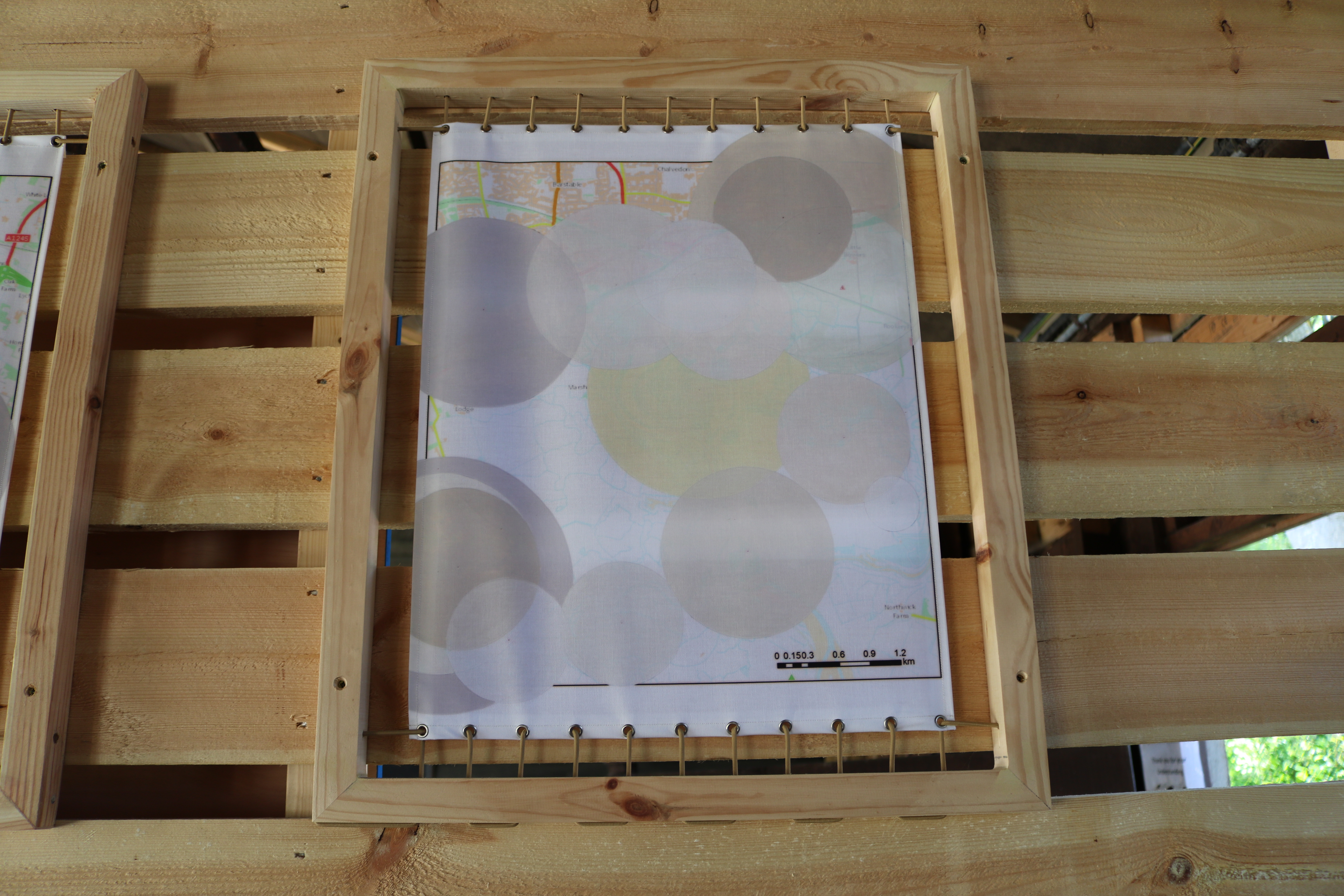 PLOT: Water Laid was produced as part of Estuary Festival located at Wat Tyler Country Park. The work explores the history of water wells within the surrounding area through research into recorded and unrecorded local water wells, a series of geographical map paintings, a mobile sculptural wishing well on wheels and group conversations with locals included, Deanna Walker, Ken Porter, David Richards and Mary Saunderson. The project looks at 137 years of local history (1848-1985) through the use of wells. Rich records that analyse the quality of water, ground, soil and usage, everything ranging from the British Explosive Syndicate well in Wat Tyler to the medicinal wells of Edwin Cash in Vange and much in-between. There has been a long standing folklore tradition that springs and wells were sacred places as water was initially thought to have healing powers, so many people would drink it, bathe in it or wish over it. This is evidenced by Mr Cash who got the water from his well (Vange Well no5), tested for medicinal purposes, and was later sold in local pharmacies. Mr Cash valued his magical water so much he built a Grecian style temple around the well, which still stands today in half ruin. This gesture seems comparable to the idea of wishing wells in that people would make a wish and toss a coin into a well. That wish would then be granted depending on how it landed at the bottom – heads it would be granted, tails the wish would be ignored. This ‘performative’ work for Estuary 2021 shares these stories and research, whilst inspiring new conversations about our most precious resource, water.