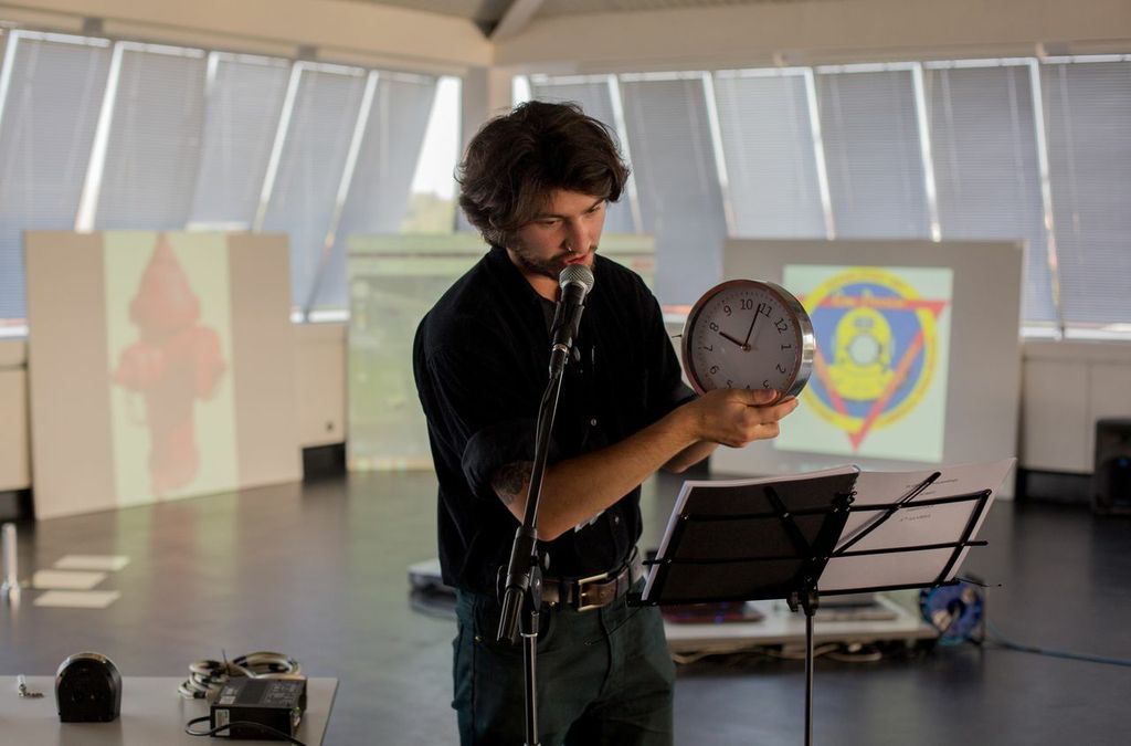 In Official Proceedings Shaun C Badham recites and performs the last 8 years of minutes taken from Bristol, South Dakota Council. Badham creates an interactive installation, which acts as a platform for the recital.